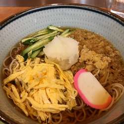 揚げ玉がのるいわゆる冷やしたぬきそばなのだが黄色い錦糸卵や緑のキュウリ、白の大根おろしがのって彩り鮮やか。... 続きを見る
