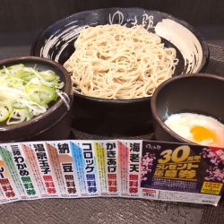 本日はコチラ「ゆで太郎 西五反田2丁目店」へ伺い「もり」を。更には30周年プレゼントキャンペーン無料クーポンを利用して「温泉玉子」を頂いて参りました。