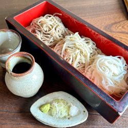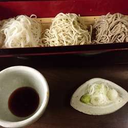発芽そば、更科そば、田舎そばが合い盛りになってる標記メニュー。